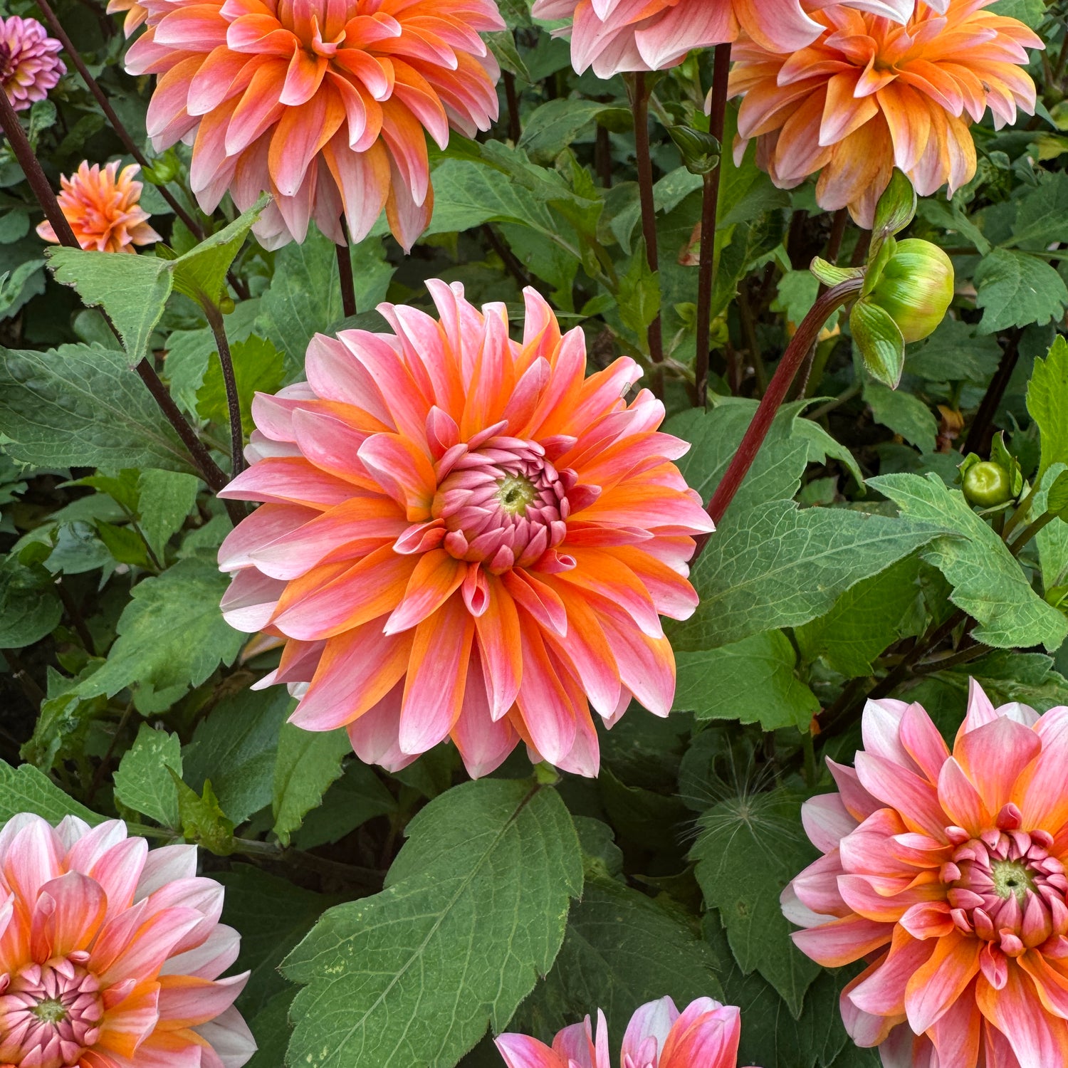 A delicate decorative dahlia with softly layered blooms blending peach, blush‑pink, and creamy vanilla hues. Delicate and graceful, it grows to 110 cm tall, making it ideal for borders or patio containers. Flowering from June right through to November, this long-blooming dahlia adds romantic pastel charm and garden elegance. Sold as a tuber clump.